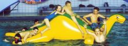 Der freundliche Dinosaurier, Objekte aus speziell entwickeltem Trevira-Gewebe, 2fach beschichtet, hochreißfest, chlorbeständig, UV-beständig und seewasserfest.