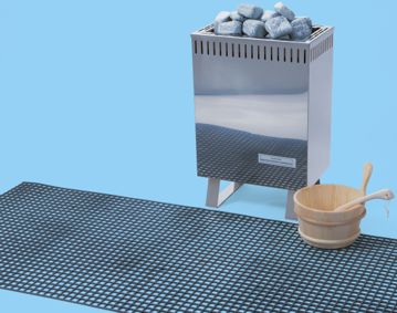 Rutschhemmender Kunststoffläufer (PVC), ideal für Saunainnenräume.