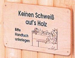 Sauna-Hinweis-Schild "Keinen Schweiß aufs Holz"